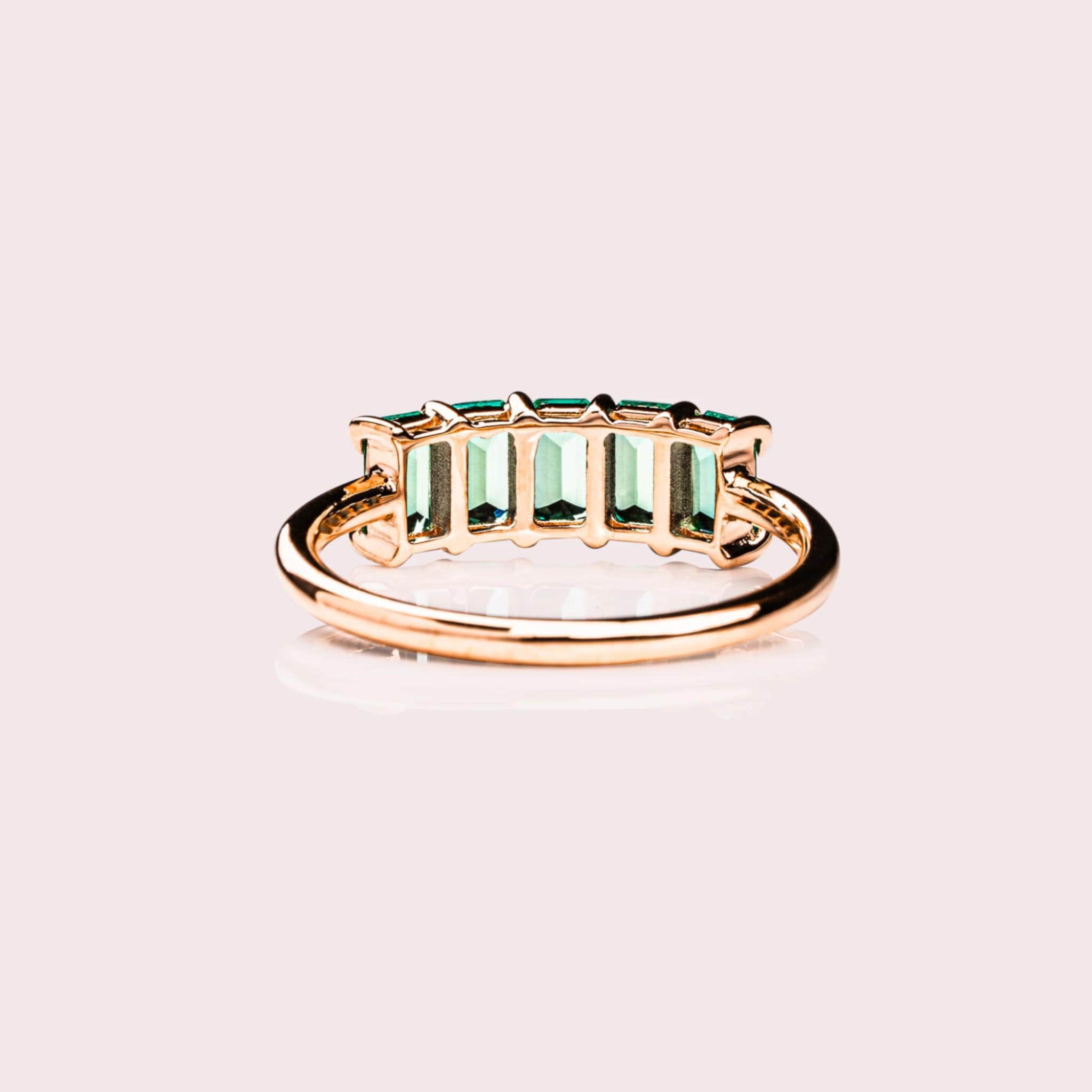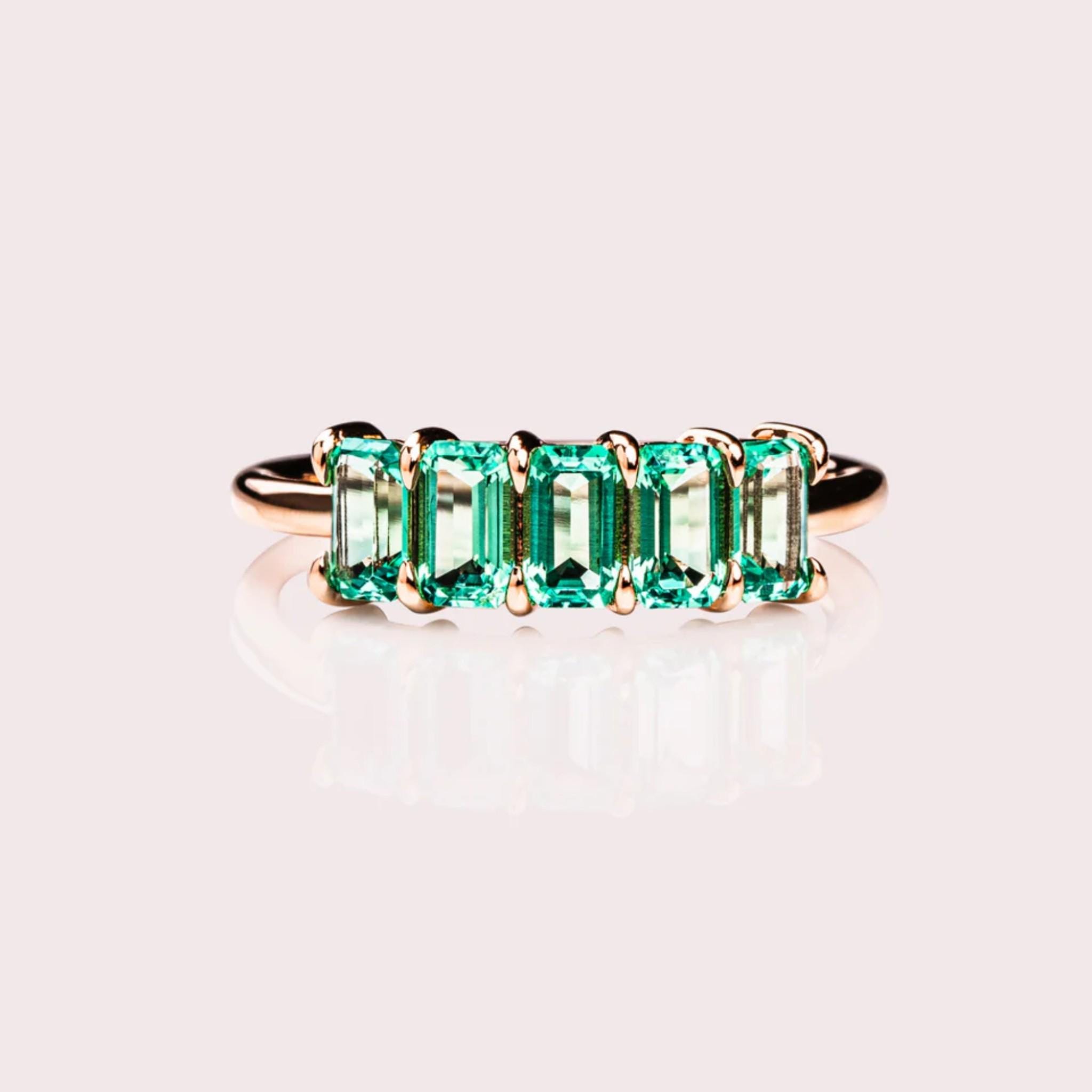 Emerald Cut Green Moissanite 5-Stone Ring: Gold Anniversary Band