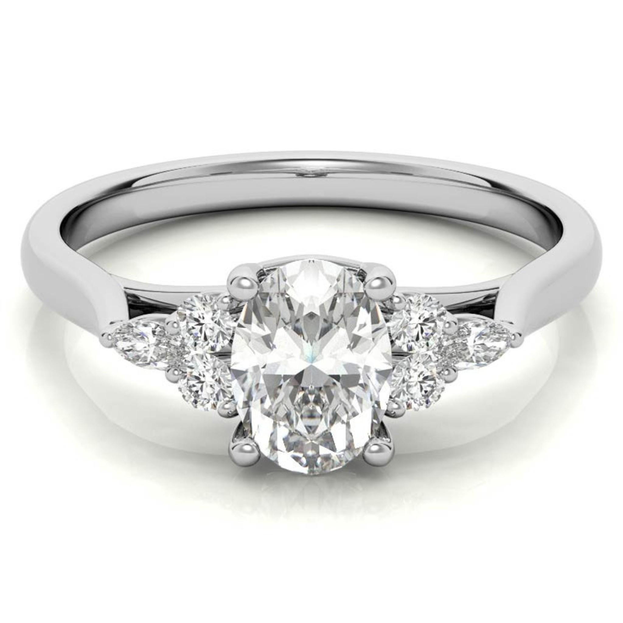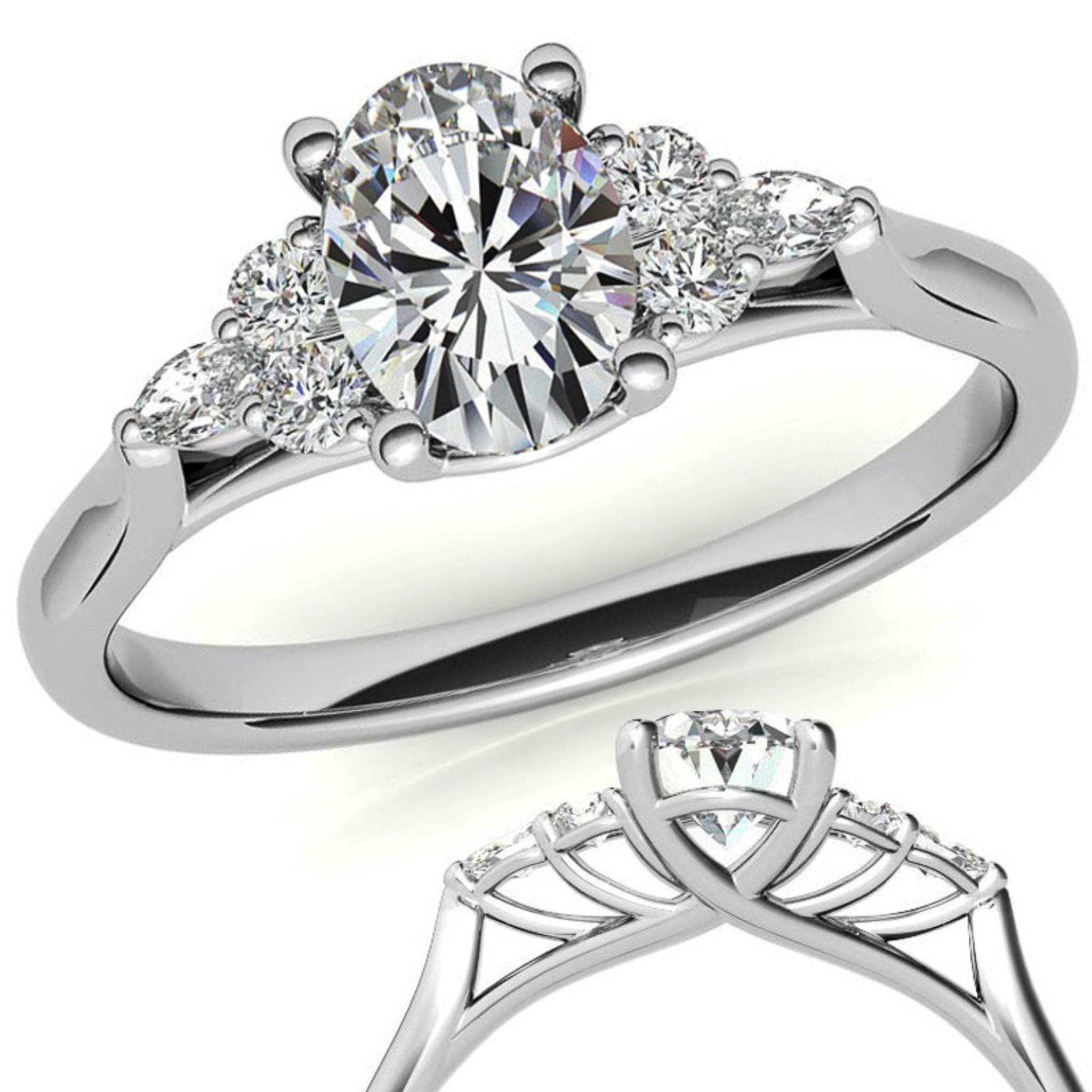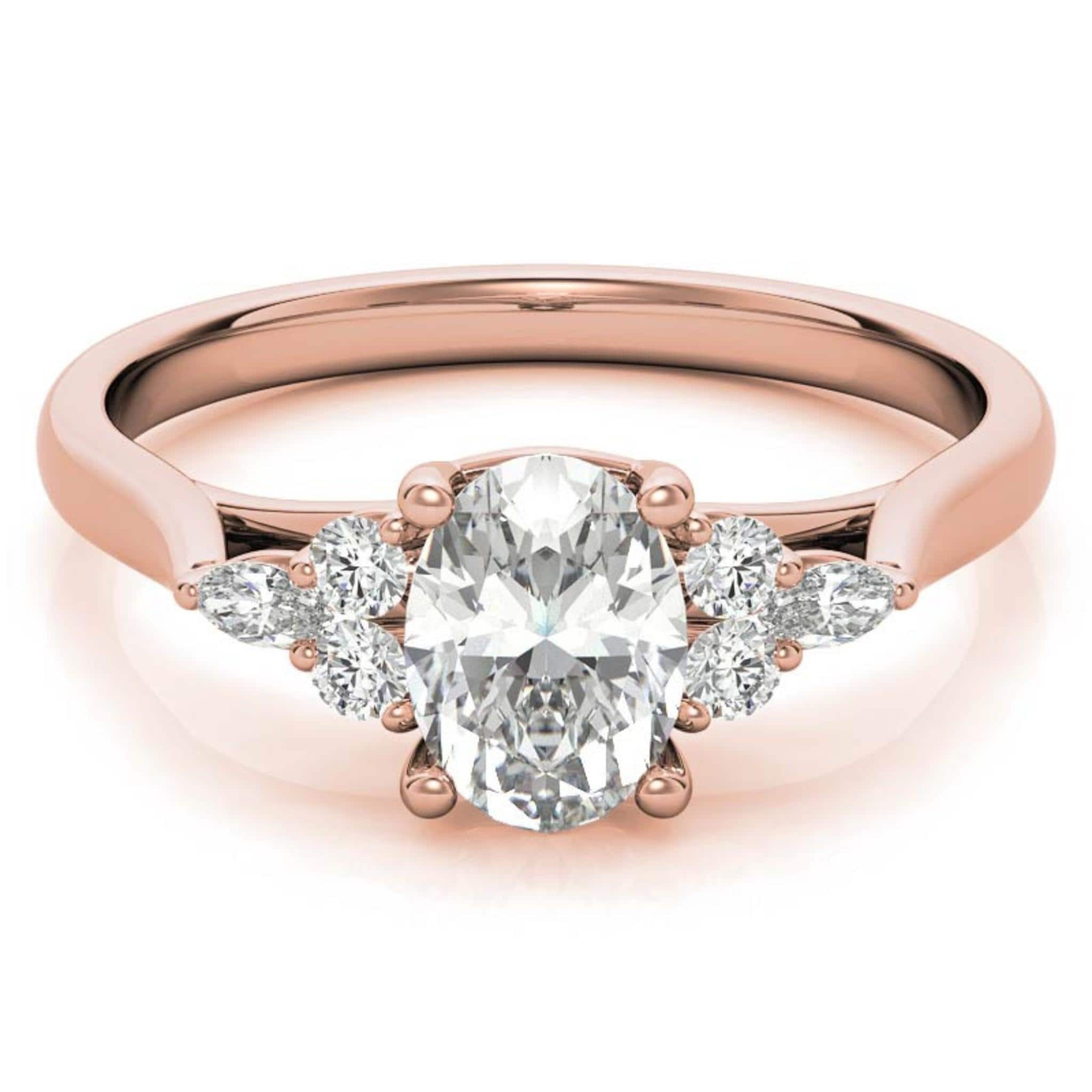 2.5ct Unique Oval Trellis Moissanite Engagement Ring | Round & Marquise Stones | Gold or Silver | Cathedral Setting | Anniversary Gift