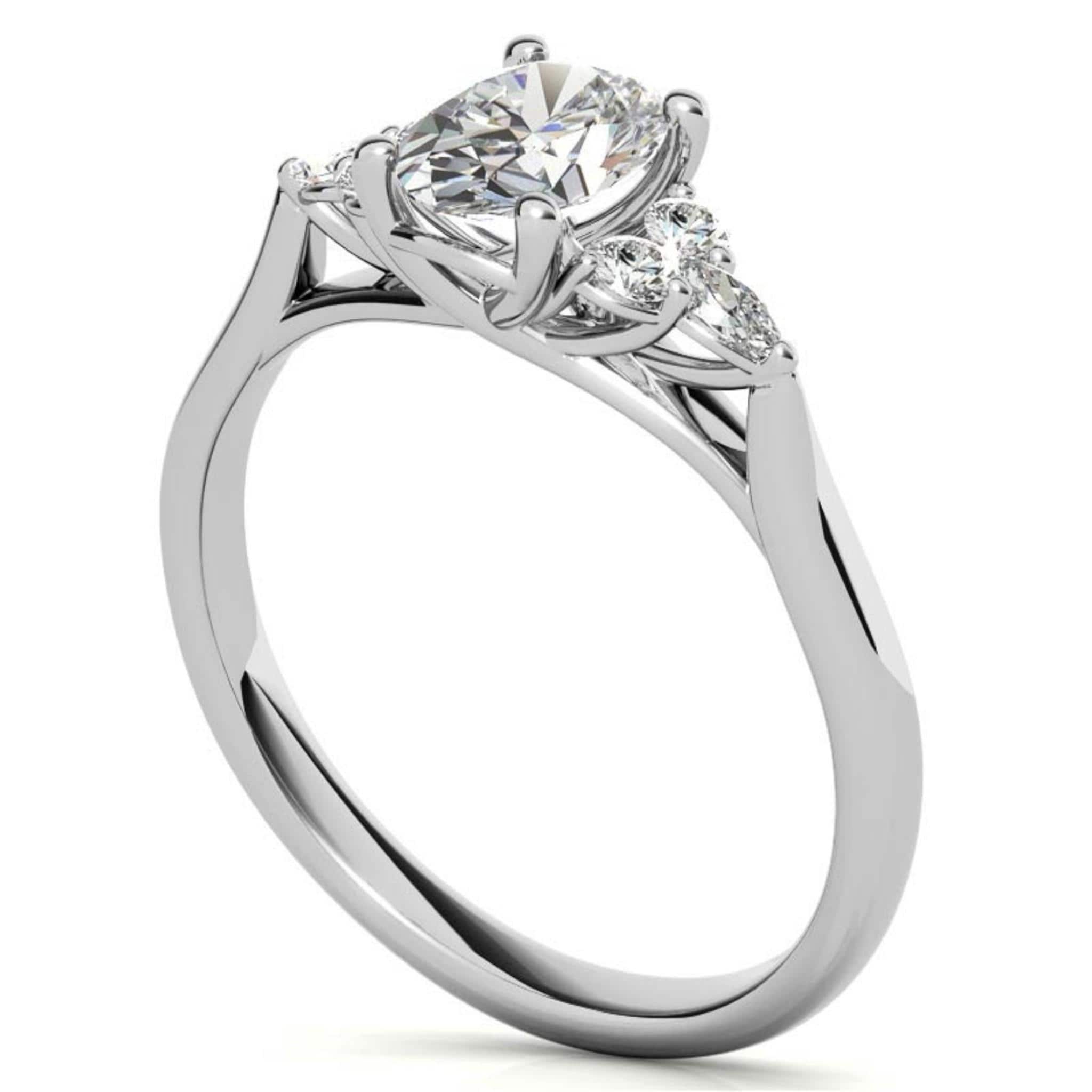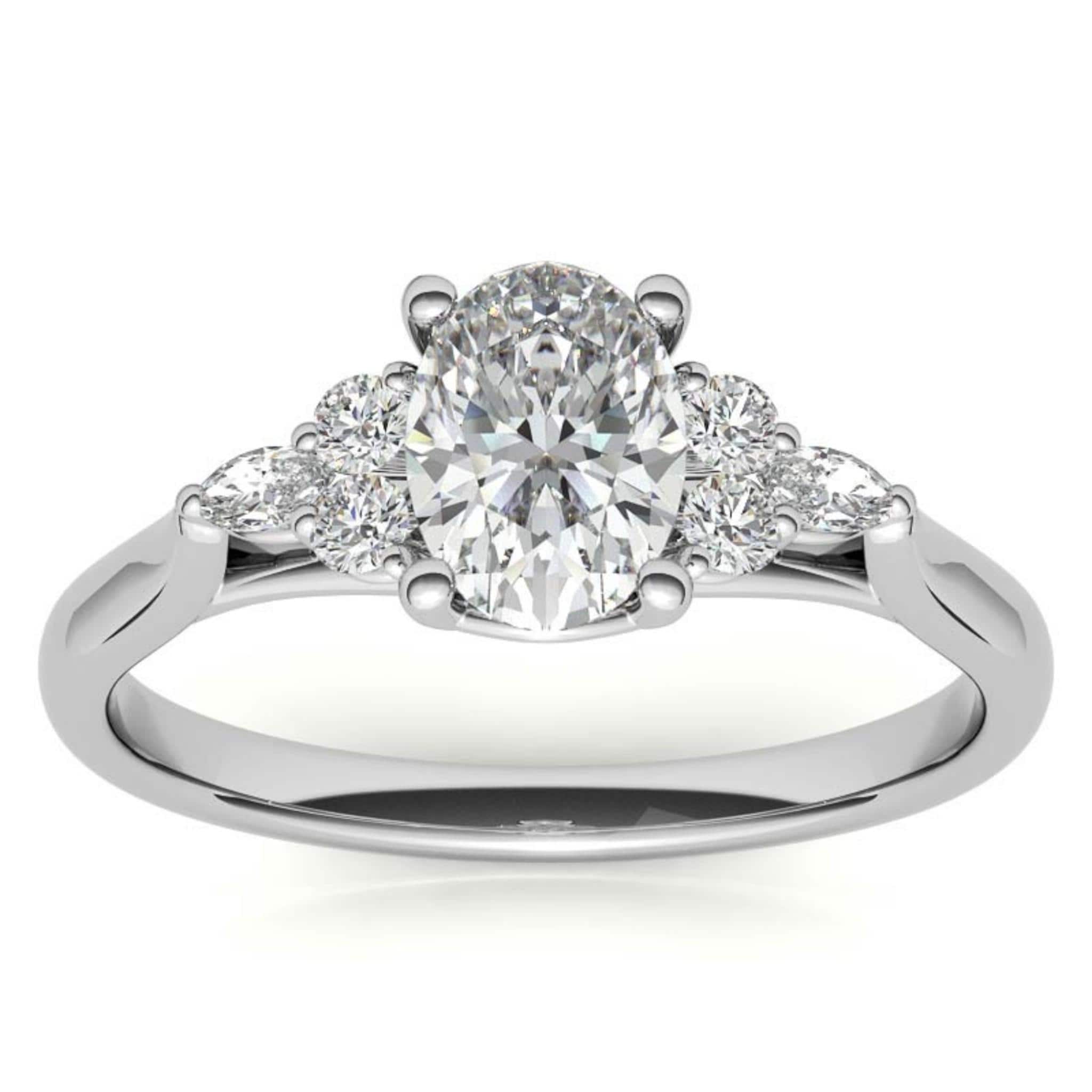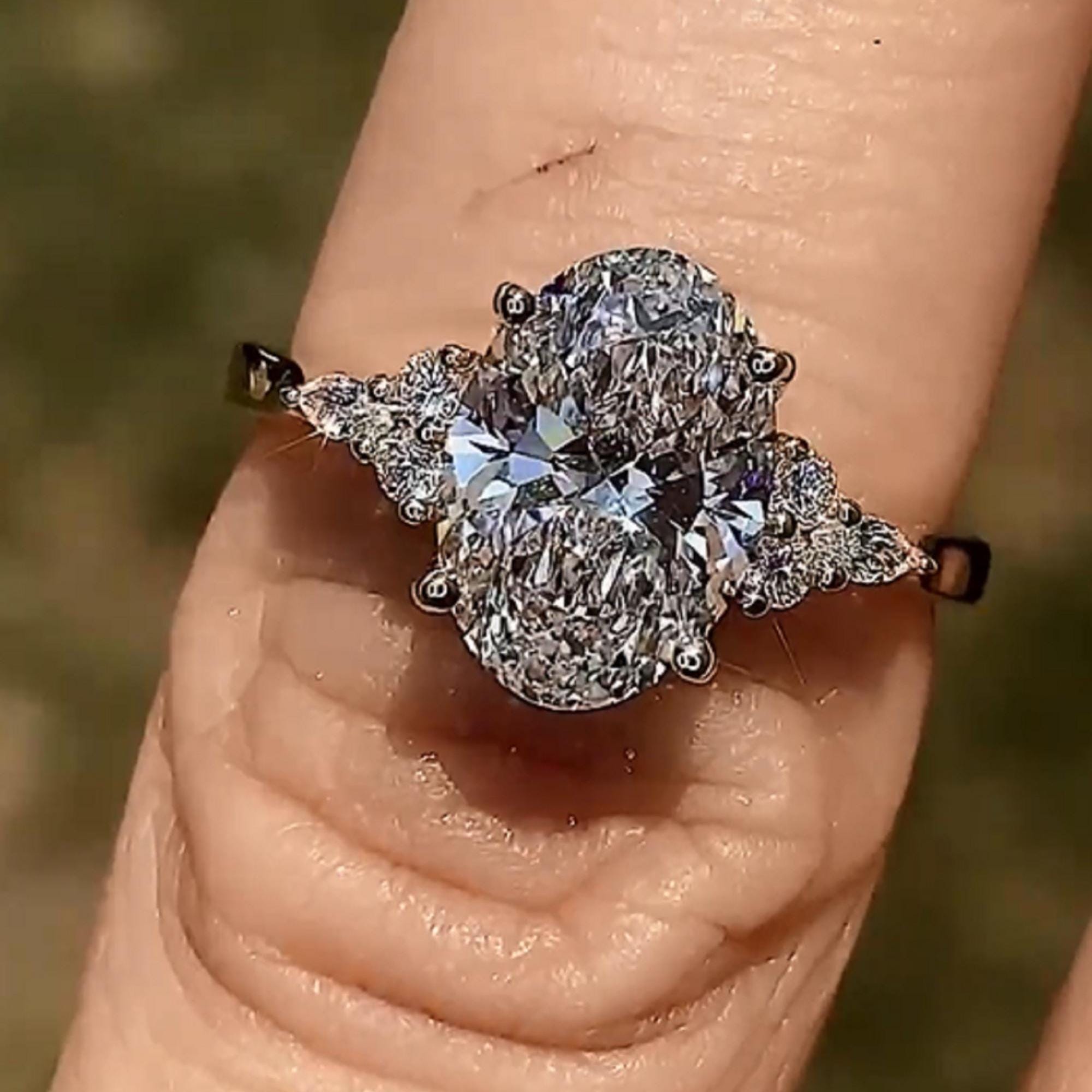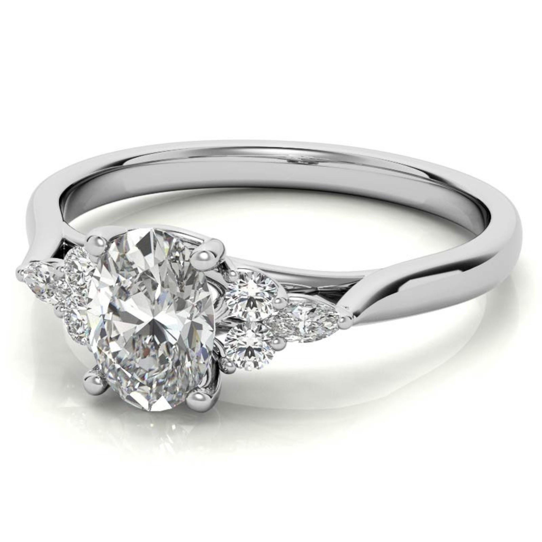 2.5ct Unique Oval Trellis Moissanite Engagement Ring | Round & Marquise Stones | Gold or Silver | Cathedral Setting | Anniversary Gift