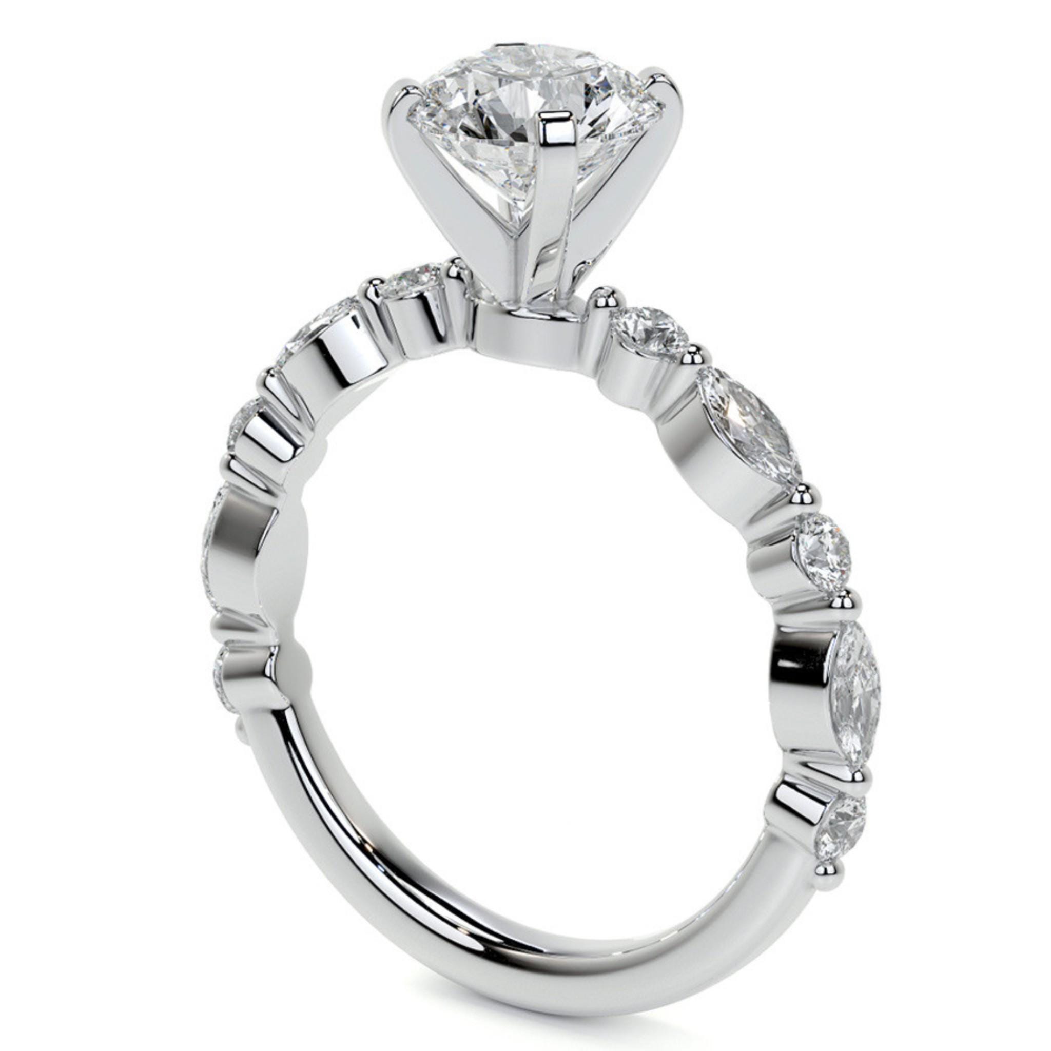 C) We make jewelry using, Moissanite or Sapphire or any other gemstones as required by you. We can make jewelry in 925 Silver, 10K, 14K, 18K and in Platinum. We can make it in White, Yellow, and Rose Gold.