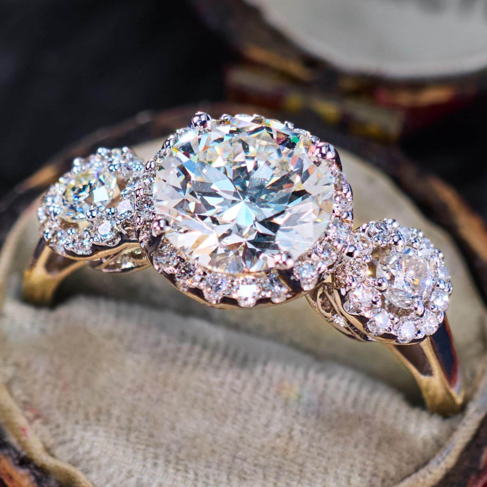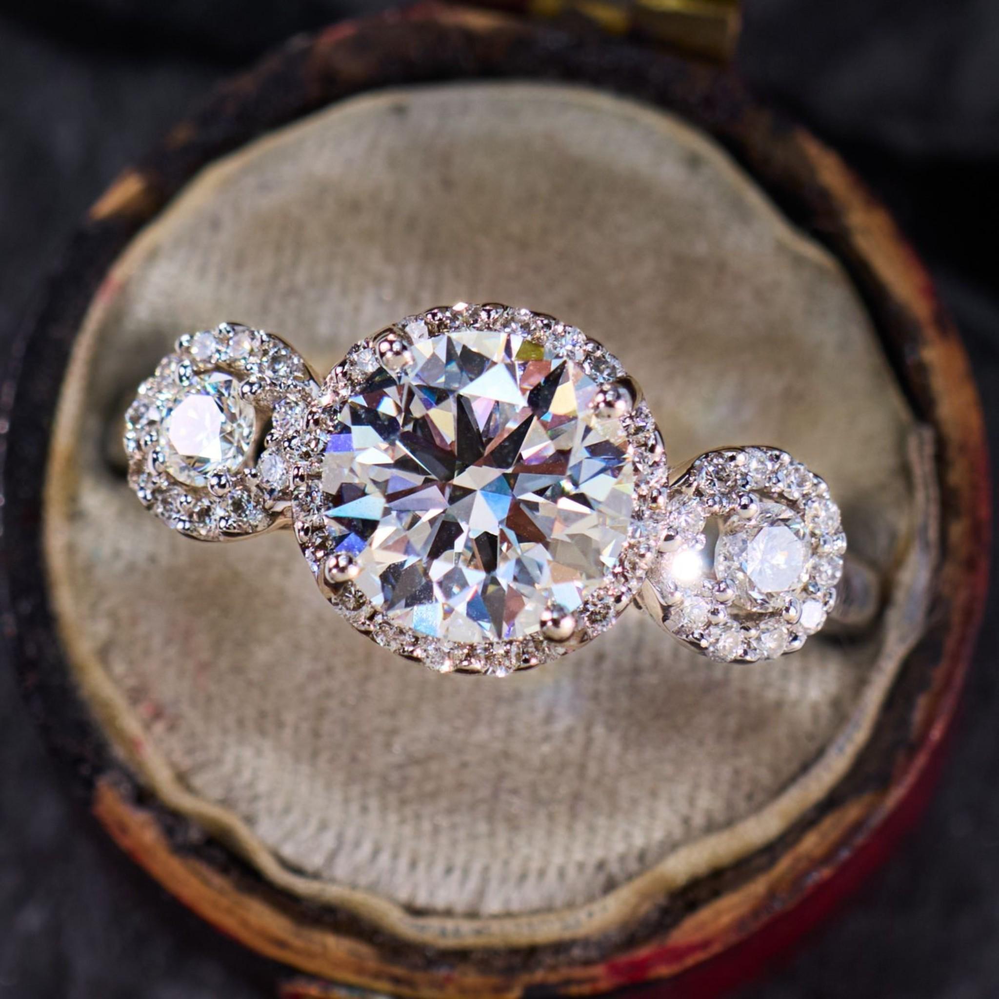 1.57ct Moissanite Engagement Ring | Vintage Ring | Contemporary White Gold | Natural Diamond Accents | Brilliant Cut | Anniversary Gift