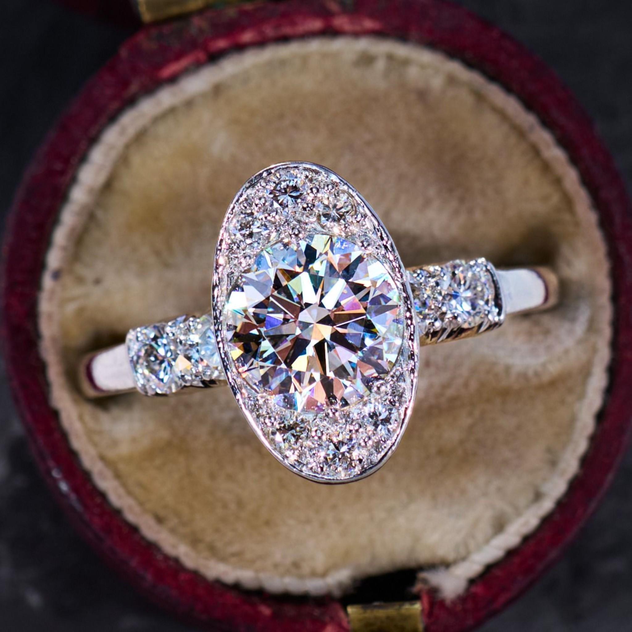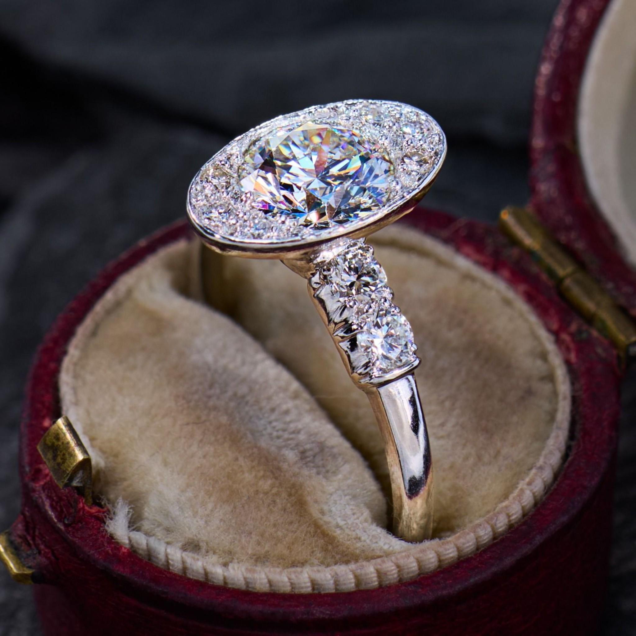 1.26ct Round Brilliant Moissanite Engagement Ring | Vintage Ring | Diamond Accents | Antique Style Oval Mounting | Ethical Wedding Ring