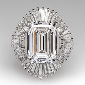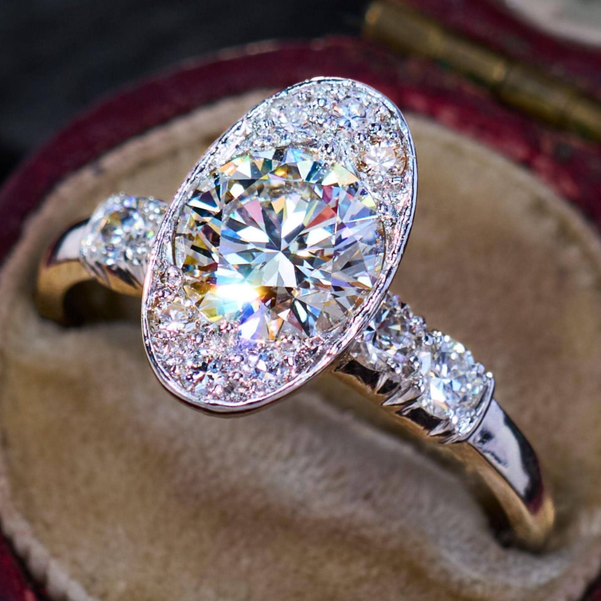 This rare 1950s diamond-accented design showcases a 1.26 carat Moissanite center stone, precision-cut for maximum brilliance. Graded G in color and VVS2 in clarity, the gem delivers a warm, luminous glow reminiscent of the finest heirloom diamonds.