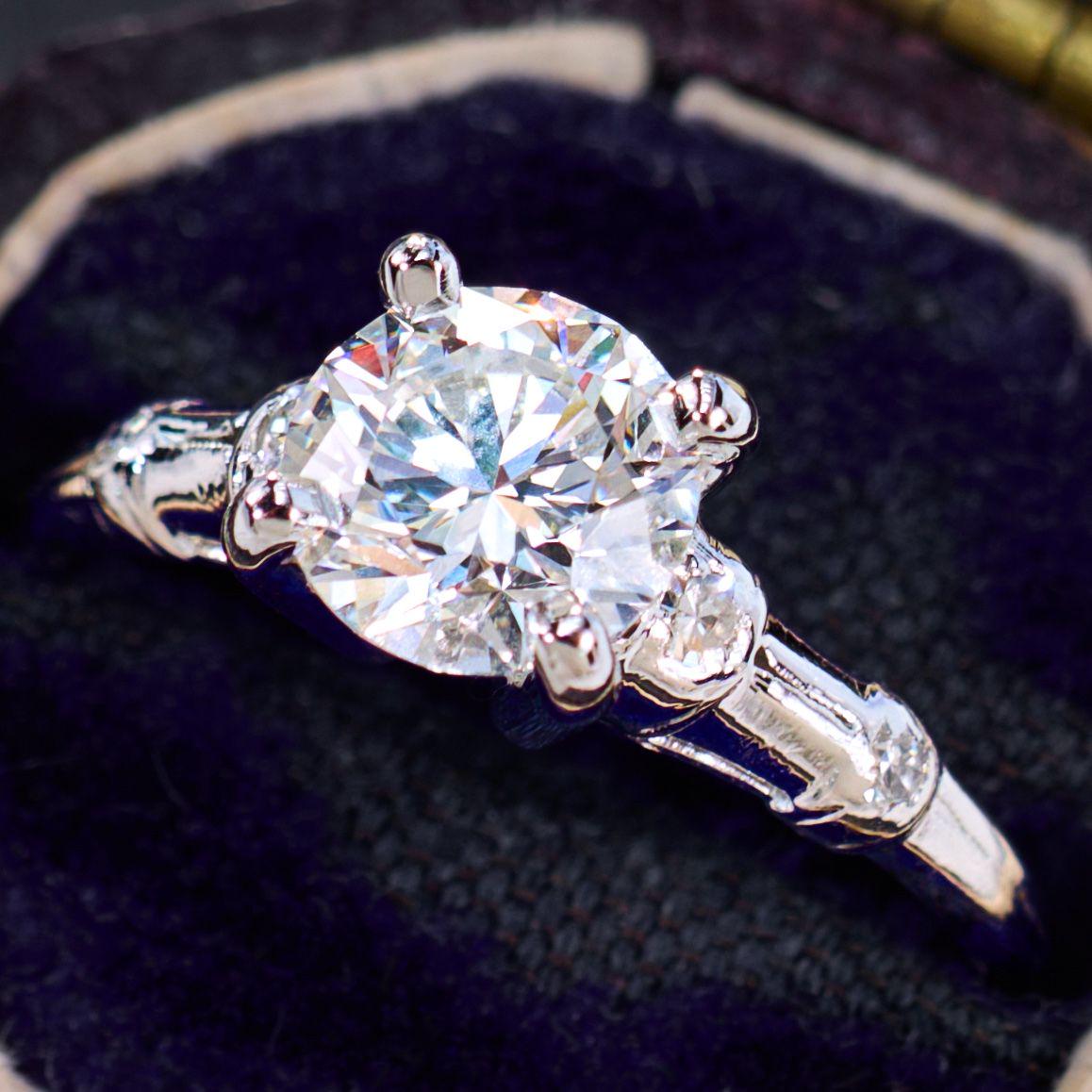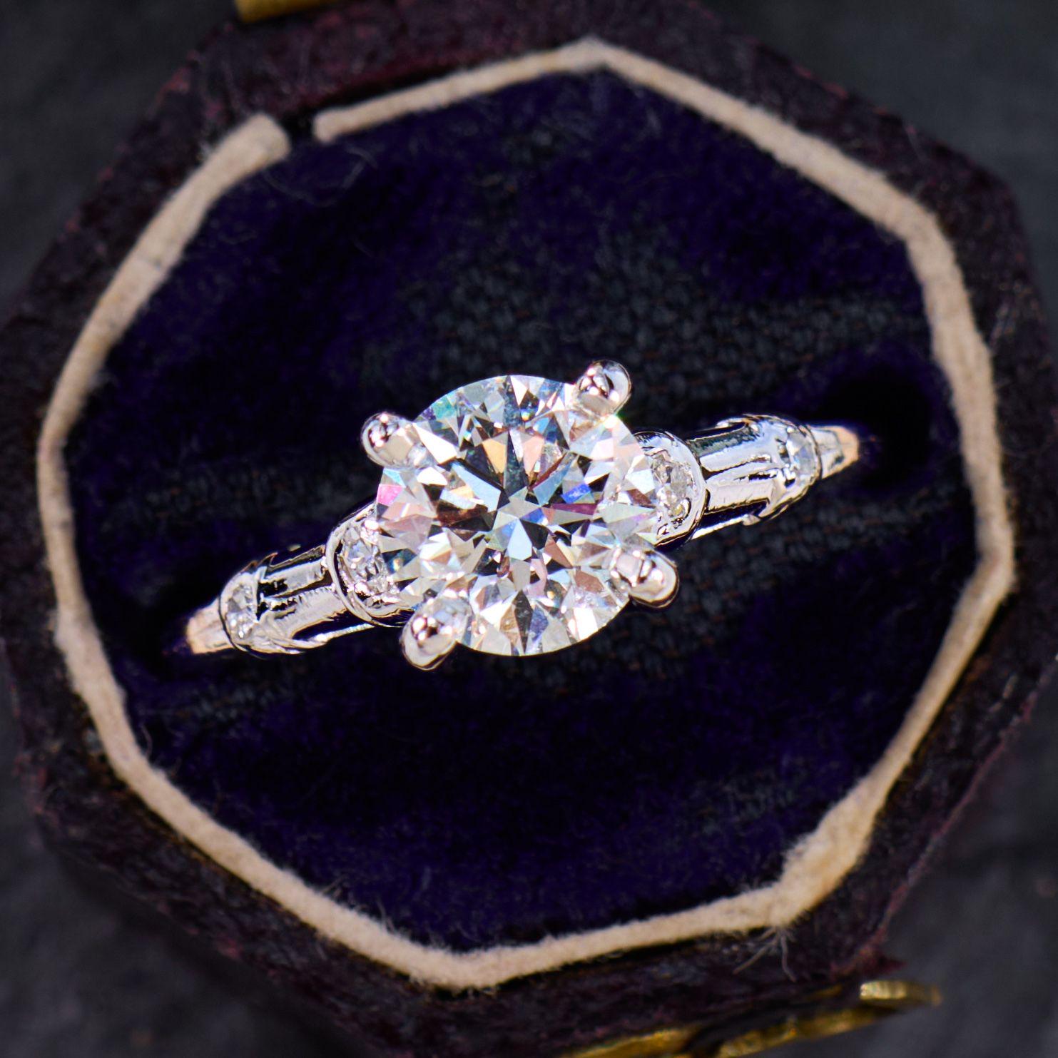 1ct Round Moissanite Engagement Ring | Gold Diamond Accented Ring | Solitaire Alternative | Vintage Inspired | Wedding Ring | Proposal Ring