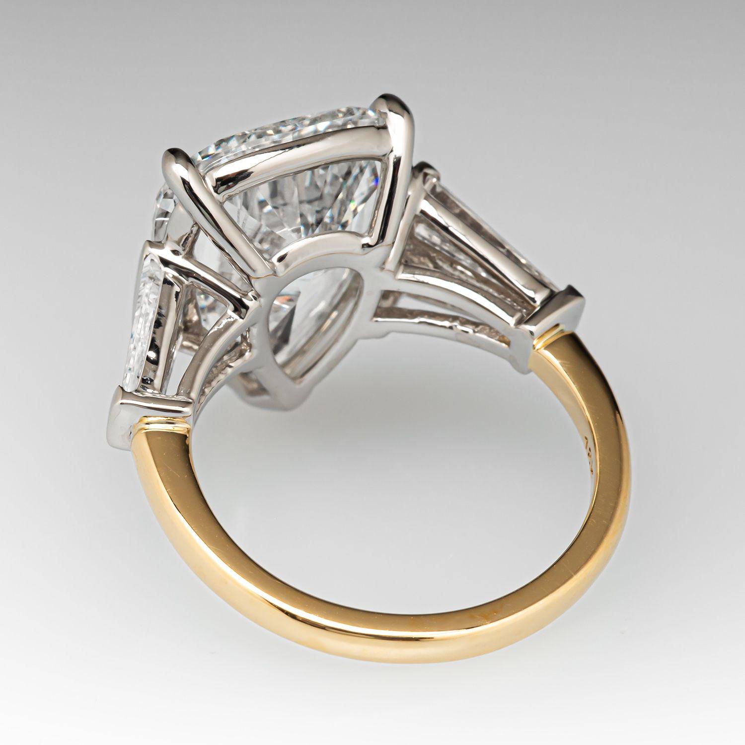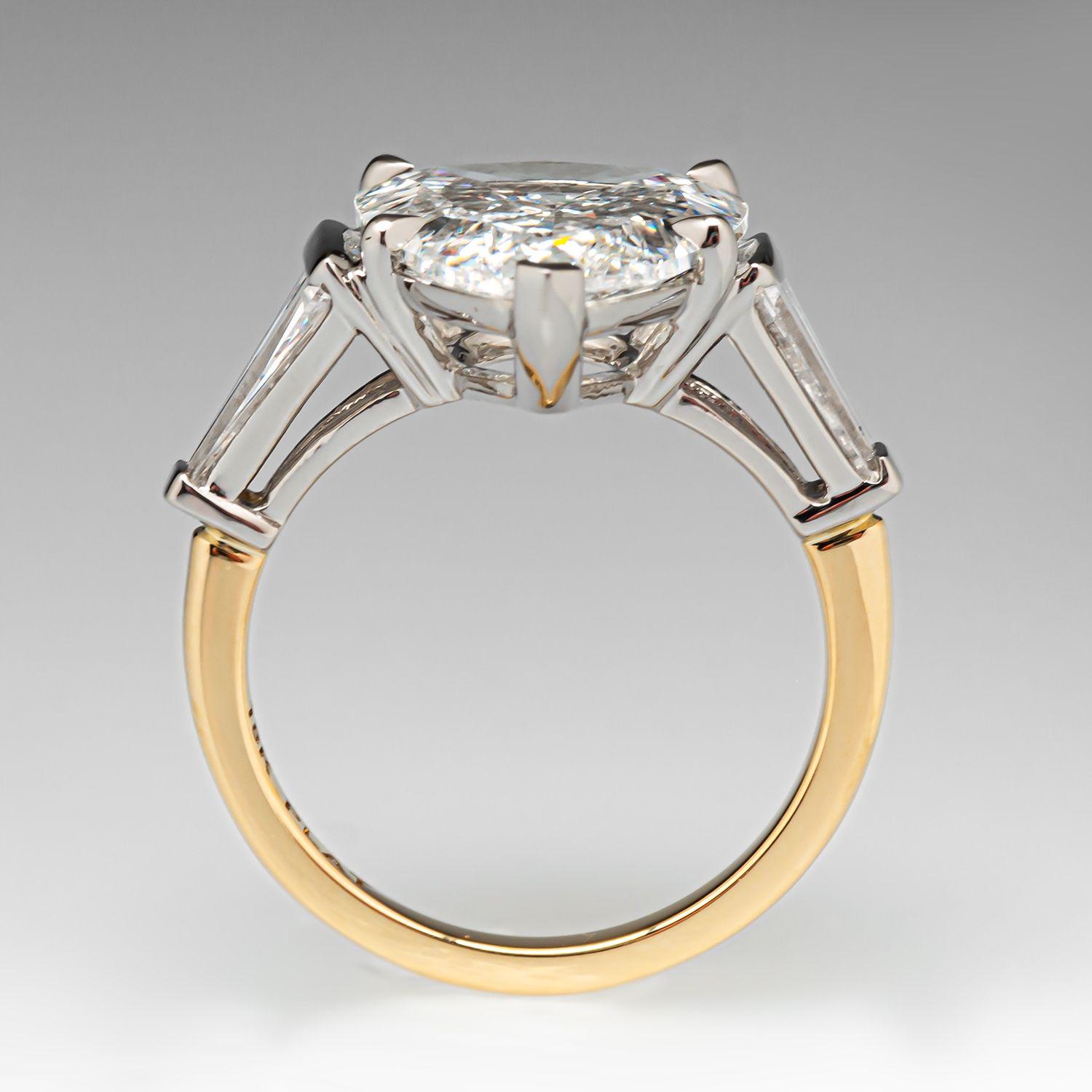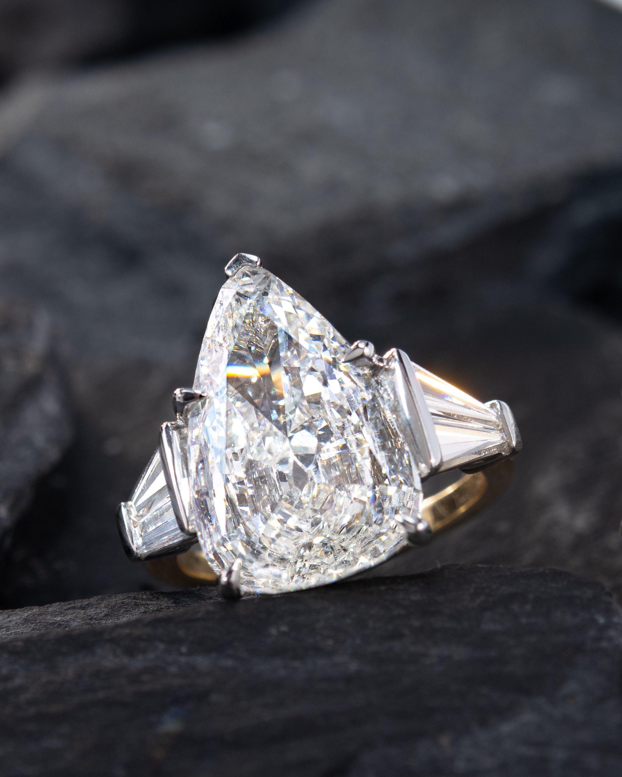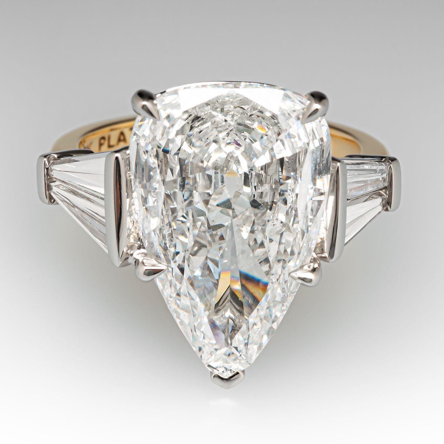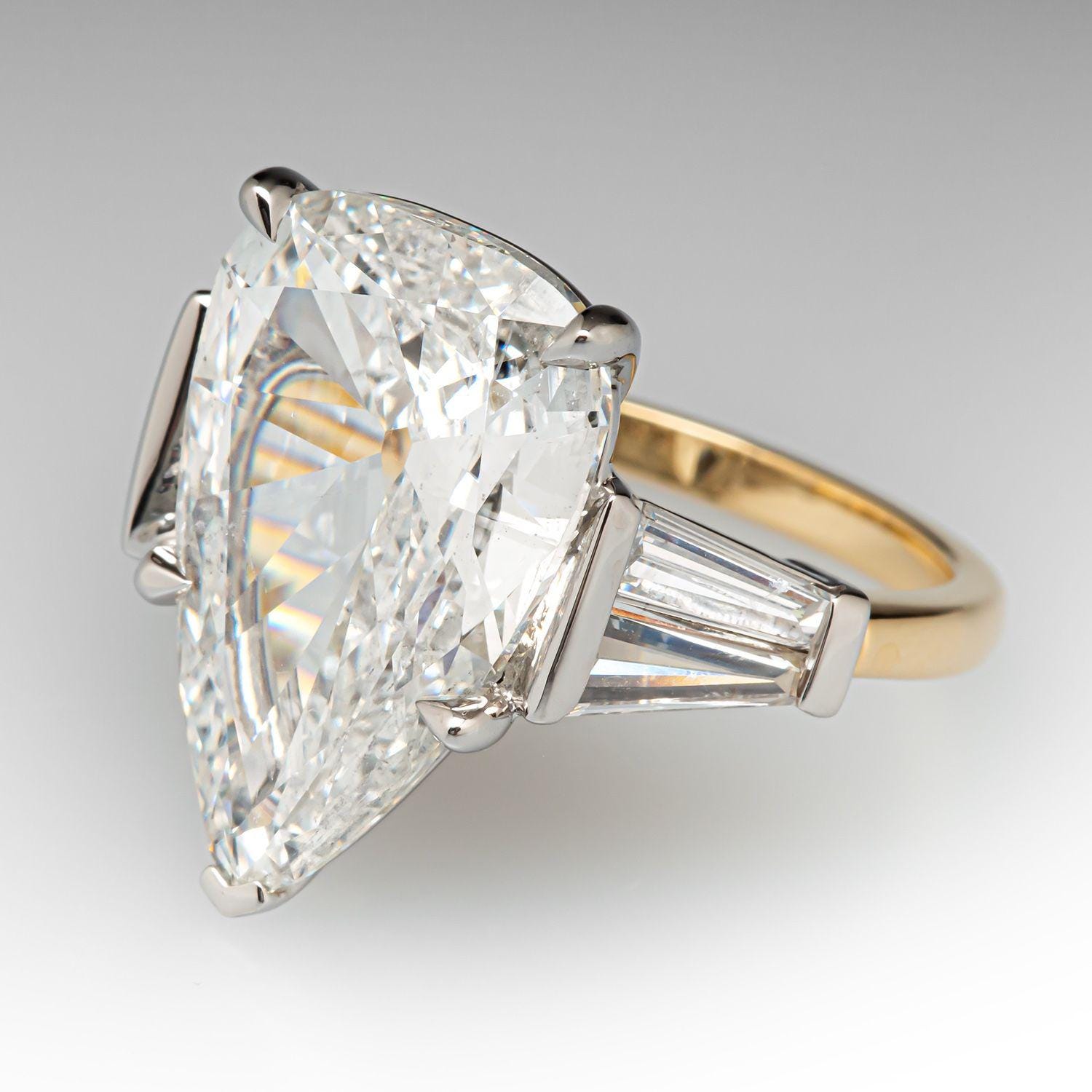 6.20ct Pear Cut Diamond Engagement Ring: Gold Baguette Accents, Vintage Style